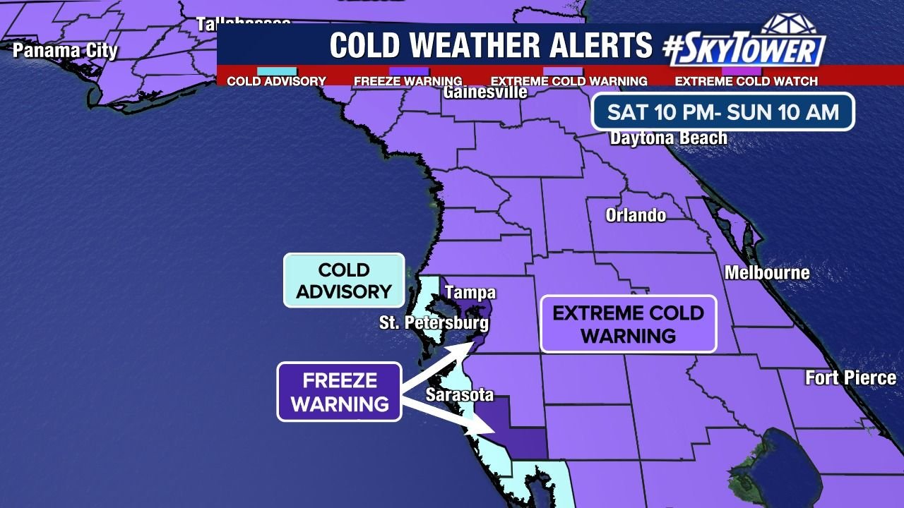 Florida Braces for Rare Extreme Cold as Freeze Warnings Stretch From Tampa Bay Inland This Weekend